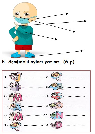 9. Aşağıdaki günlerin tamamlayınız. (6 p)